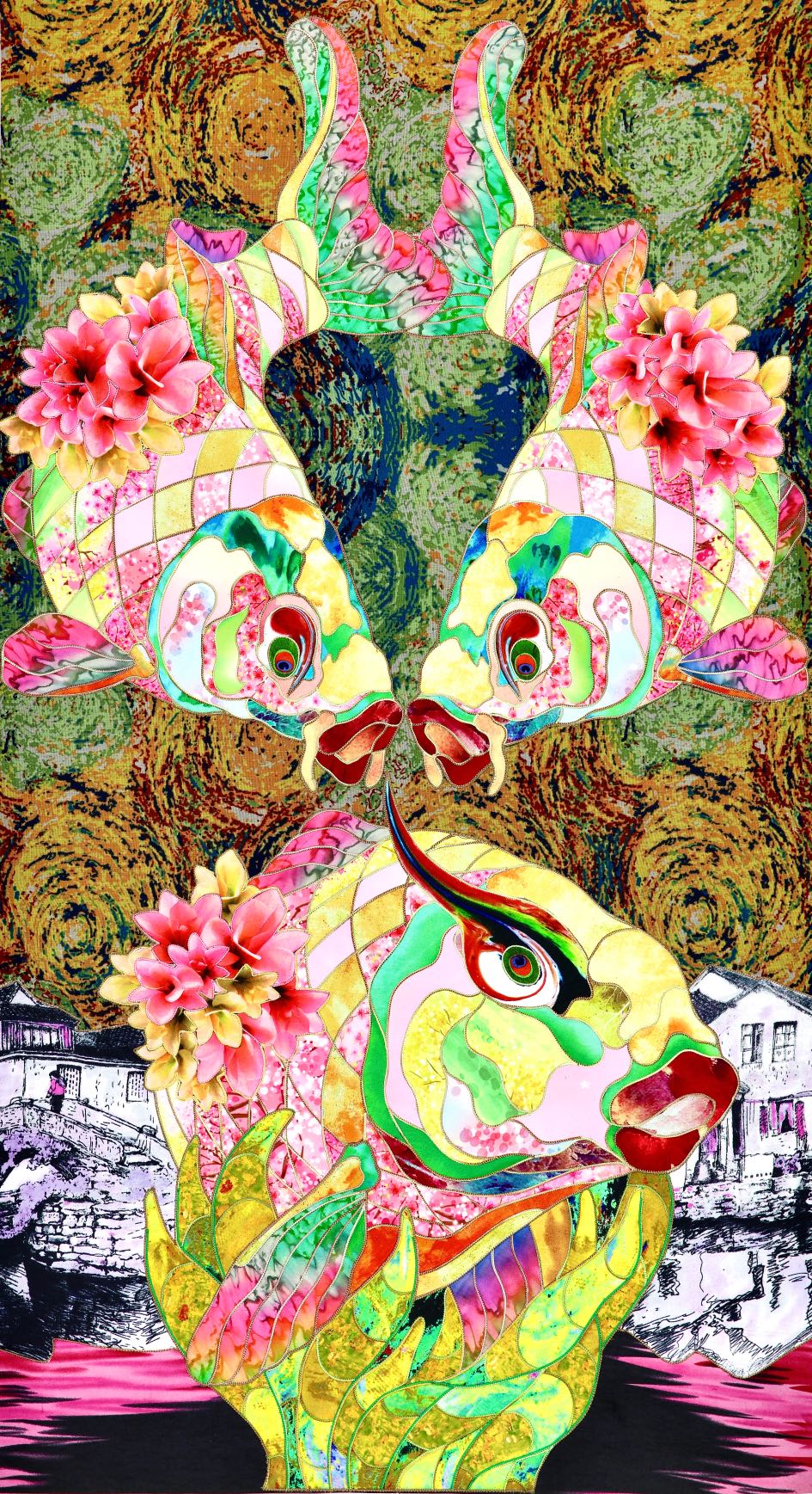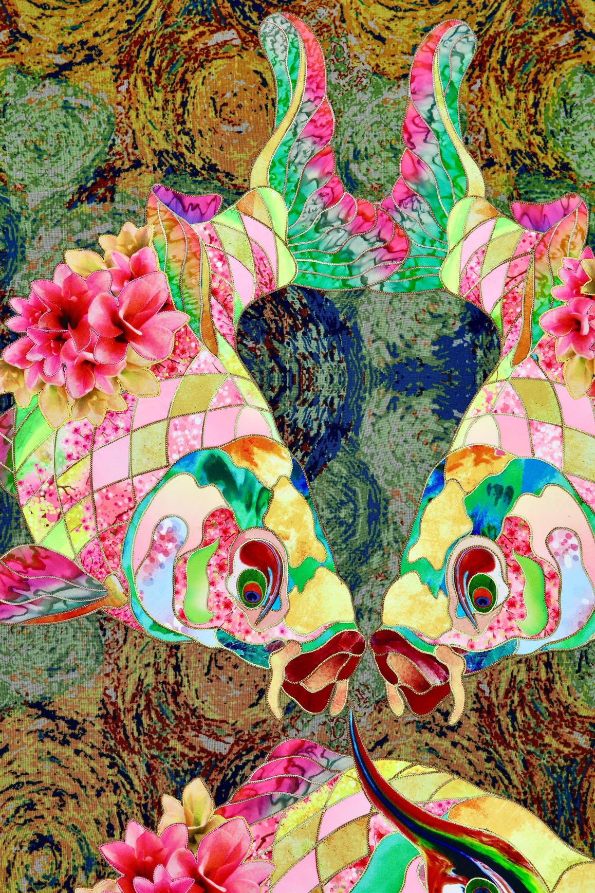"Pink carp" – embroidered with silk by Kostyantin Malginov.